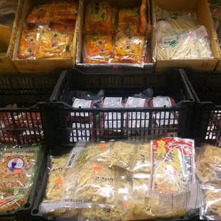 The main thing that drew me to try this market was that there is Korean Hangul Shik-pum-jom written as one of the languages on the front, so they have Korean products. They mostly cater to Vietnamese, Chinese, Japanese, and Filipino customers.I have never heard of this market before and was super impressed with the organization, freshness, and selection of the Southeast Asian foods offered at Bolsa Market. The name is very interesting, because it could easily be spelled in Hangul, has a Spanish or Tagalog meaning, and also an English meaning. Could also just be the owner's family name. At first I was super impressed by the produce section, and then more and more impressed as I walked through the store. The produce was perfectly sorted and inexpensive. I just kept saying, "This is awesome!" to the point, I think I was totally embarrassing myself.For example:-green onions are clean of debris and tops are cut blunt, neatly packaged and price clearly labeled.-rau muong (water spinach)- neatly sorted, no brown spots, cleanly packaged and clearly labeled.-same for cilantro, jalapeno, yu choi, and shanghai bok choy--- and all other herbs and produce. They even sell homemade banchan (Korean side dishes) in this area.While the selection of items is very impressive, the entire place is extremely clean, good smelling, and organized yet in-stock. Like whoa. Especially for a market that has a working meat counter, very clean. There are prepared foods by the entrance that are inexpensive and tasty.The prices are not too high either on their Korean and Japanese products. They sell frozen Yakisoba and ChapChae noodles that are stored correctly and over two bucks less than at other markets, same for the miso pastes, flavored jars of honey for hot drinks, and the laver/kim (seasoned nori). And, they have items that even some Korean and Japanese markets do not have. There is an area that sells Vietnamese DVD's on the left side of the store. Behind the counter, they even sell my favorite hair dye!I WANT to shop here more.
