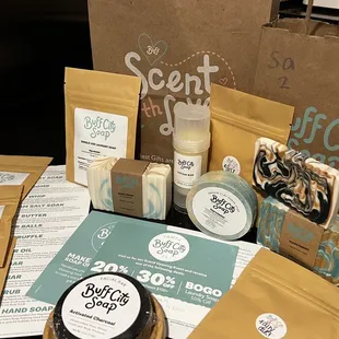 Well, I never expected myself to be in a store that sells soap and related skin and personal care products. Yet here I am. Head that this place was opening in the Midtown plaza, where I've been to many other stores. Wife wanted to check them out for Mother's Day so i decided to oblige and tag along. Parking is plentiful in the surrounding garages, which was great. We needed up being there on the 3rd day of grand opening weekend and scored a couple of freebies, which was a nice bonus.First impressions? The store is bright, colorful, and actually smelled good! When you walk in, they have all of their various scented items organized into their own sections, which included soaps, lotions, laundry detergent and other associated items. The staff was helpful and always checked to make s=they answer any questions we had and to direct us to product we might be looking for.Long story short, I got soaps, detergents, lotions, and soap bar holder/loofah. They have men's products in there selection so I didn't feel left out at all. To be honest, I liked the different scents and many actually reminded me of my wife (I guess she e=smells like lavender and other stuff...lol). The really nice thing is that all the products are organic and pretty much made in house. Nice change from the standard chemicals used in body washes and other similar products. I'll try these products out and if I like them and they do what they're supposed to do, I'll be back. If you get a chance to go to Midtown, at least drop into Buff City Soap and take a sniff. It might surprise you and you'll walk away with a bunch of stuff like we did!