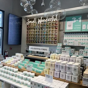 The store is a very cool concept and the set up is aesthetically pleasing. I enjoyed walking around here while passing the time. They had a cool sink set-up where you could test some products and wash them off which I found to be a nice touch.Sadly, the products I sampled did not live up to the hype. Keep in mind scents are super subjective. Almost none of the soap bars I smelled had any scent except for the peppermint one (I believe it was called "breathe easy" and meant for congestion). I tried the foam hand soaps, epsom salts, soap whip, and lotion sticks. No luck finding a pleasing and present smell. I went so far as to use the hand soap, soap whip, and lotion sticks on my hands but could not smell a thing. Perhaps if I bought some thing and gave it a few chances at home I would feel differently, but I did not find anything I would want to spend money on.That being said, while I was there they were hosting a bath fizzy class where you were able to make some and bring them home, which I think would be a fun experiencing worthy of the time and money.