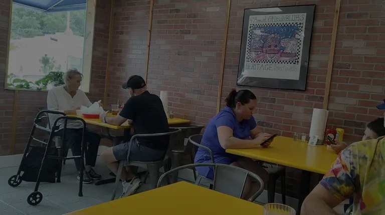 Great quick no frills burger place. Best I've had.They have great sides also. Parking is tough if it's busy.