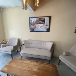 Finally was able to try this place out, weekday off What better way than to try a coffee place with plenty of seating, took advantage while I got my car detailed 1 block away. I ordered the peppermint latte which I must say I was super excited to try, but I did over hear the barista say they ran out of peppermint while Making my cup. which I was hoping was after making my cup but I was wrong it was my cup truly lacked taste. The only peppermint I tasted was sprinkled on top. wish they would have told me they ran out instead of giving me a bland cup of iced coffee. But hey. Time to try another coffee place I also tried the pb and banana toast with berries and I requested honey on the toast but instead got it on the plate hmm not exactly what I requested. Either way great place to sit. While you wait for carwash.