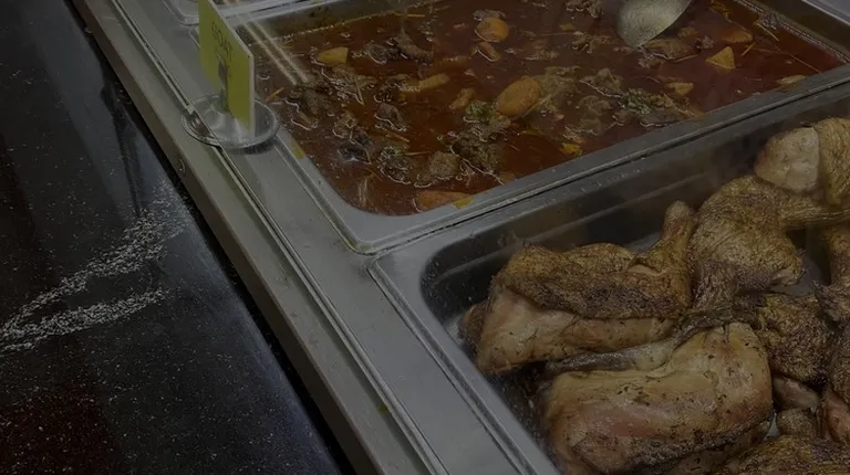 This cafeteria to go place is popular for the local. Food price is standard average level. The entrance and building is not look like a restaurant. It almost like market with deli. The market also look very little. A bit rundown. They do have a lot of choices. Not much of cook on the spot food. But the cafeteria display is enough. Quality is average. We got the oxtail with black bean rice and collard green. The collard green is just ok. The rice is bit muddy soft. I like it a bit solid grain. Oxtail is cook good enough fall off the bone but completely. Overall is just average. Not much service. But they kin to help me for any questions. Food quality is average nothing jump out.