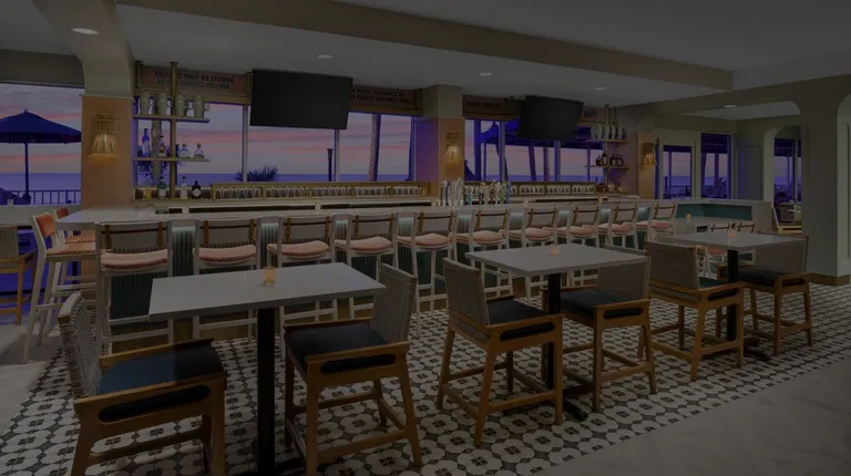 Best view around, maybe 100 feet from the Gulf. Crystal made us great and strong cocktails, Sand Bagger and Rum Runners. Food fast and hot, cheeseburger good with super crunchy fries. Also did the chicken bowl, good but not as good as the burger. Love the DoubleTree vibe.