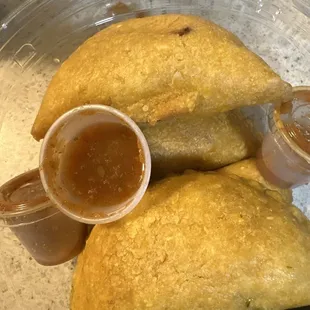 Very yummy empanadas. Wished the ají was a tad bit spicier but it had good flavor. The cashier was very pleasant and apologetic for not having other flavors of empanadas but chicken available, which we didn't mind. It was very clean inside with quite a few booths filled with people having dinner. Would definitely go back for the empanadas!