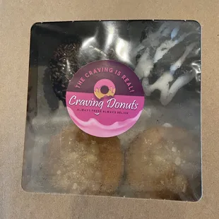 HOW DID THIS BUSINESS ESCAPE ME ALL THESE YEARS??? This donut company w/ its adorable pink food truck & daily freshly made donuts easily won my heart after it provided a two-pack (of our choice) to my school's teaching, custodial, food service, & administrative staff.My kind supervisor picked out my two-pack to serve as brunch, although I was full after consuming 2/3 rds of the box. My two donuts were "Chocolate Heaven" --all chocolate including the sprinkles & "Big Guava" (which included cinnamon sugar). Both were fresh & delicious, but I found the cinnamon & guava glaze combination more Heavenly-- just personal preference. SEE PIC OF BOTH EXTRAORDINARY CREATIONS! Definitely the B*E*S*T cake donuts I've ever sampled! So fluffy-- no dryness whatsoever. And the toppings were flavorful. If only I had known this business has been open since 2015! Whether you're in Lakeland, Apollo Beach, Riverview, South Tampa, Carrollwood, New Tampa, Lutz, Wesley Chapel, Land O' Lakes or numerous other Tampa Bay area cities & towns, you'll have the chance to try these magnificent sweet creations. (Carrollwood Fresh Market, Hyde Park Market, & Wiregrass Fresh Market are three weekend locations-- check for specific dates.)HERE ARE THE 16 FLAVOR VARIETIES OFFERED @ THIS TIME (AKA the staples):(1) Rainbow Cake (2) Chocolate Heaven (3) French Toast (4) Fruity Crunch (5) Cookies 'n Cream (6) Chocolate Raspberry (7) Funnel Tease (Caramel) (8) Myers Lemon (9) Caramel Bacon (10) So Much S'mores (11) Strawberry Delight (12) Original Glaze (13) Apple Pie (14) Chocolate Peanut Butter (15) Big Guava (16) Funnel Tease (Chocolate). *Check out the business page to see photos (w/ descriptions) of all offered donuts. TEMPORARY FLAVORS are at times added, such as the current flavors-- Salted Caramel & YUM. GLUTEN-FREE donut varieties are available, but a customer must "put in the order by 7 PM Friday to pick up on Sunday @ the Hyde Park Market."Coffee, Cold Brew, Bottled Soda, Water, & Juice are available. PAYMENT for your order can be made via credit card, Apple Pay, Debit, or, of course, cash. WHERE CAN YOU LOCATE THIS FOOD TRUCK within the greater Tampa Bay area? Simply go to the business page to see the truck's monthly schedule; it's easy to read. Should you prefer catering, there's an online form to complete. Any type of order can be placed via text, phone call, or email. Craving Donuts has a motto-- "Always Fresh, Always Delish." I can attest to it. And although I eat donuts maybe 4x yearly, you'll find me @ the lil' pink truck the next three times I am craving one...or two:)