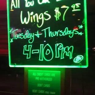 Since my last review they seem to have done away with their food specials. No more all you can eat wings for 12.95 or 1/2lb angus burger 6.99 mon-thursday. One of the waitresses asked to look at my phone (i was on the dagwoods website.) she kept asking if i was on google like it mattered. I was on their web page. Then she kept telling me "i'm not the manager, but we don't do those anymore. I keep telling "them" to change it, but "they" say they don't know the password." So, long story short, they don't offer the food specials any longer, but the wings are still good.