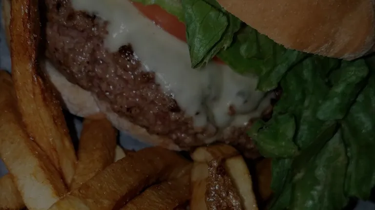 "Your Way Burger" & fries $9.75 Medium rare, w/ bacon, provolone, lettuce, tomato & mayo
