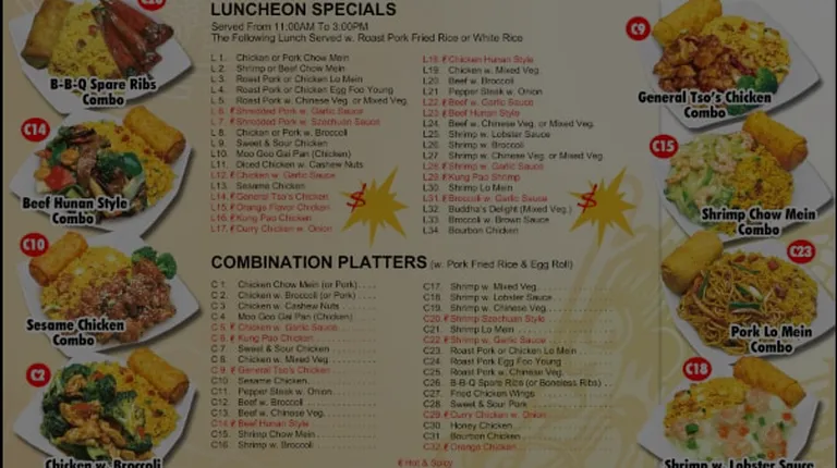 Horrible!While the food was hot it was tasteless Roast pork fried rice was ok Shrimp and lobster sauce was watery and the shrimp was paste like overcooked ugh Not that it makes a difference at this point but I asked for extra mustard and didn't get one