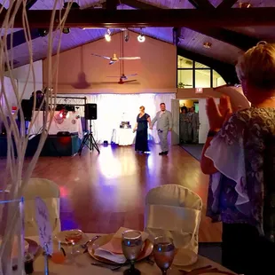 My husband and I had our wedding reception here in June of 2011. They have multiple rooms but we had the big main room. We had about 200 guests (but it can hold more). Nice size dance floor so no one felt over crowded. Had a little stage in the corner for the DJ. Already comes with all the cool lights for the dance floor. Full bar which you can opt to have as an open bar or cash bar. They cater the dinner but you can still bring in your own food for appetizers, (we had a chocolate fountain). The main meals were good. We have chicken cordon blue and prime rib with all the sides. Beautiful view from the gazebo and outside overlooking the lake. Made for some great pictures.It was a great wedding and the owner is super nice. My only complaint is the clean up staff either stole to eat or threw away my wedding cake!! It was a 4 tier cake and there was about 1/2 left, including the top layer that I wanted to save and freeze for my one year anniversary. But I went back to get it and the entire cake was gone! I think the staff ate it in the back but what a waste! I can't believe they stole my cake.