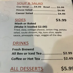 the menu for the restaurant