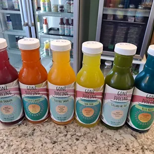 Rotating House made Cold-Pressed Juices. We rotate throughout 243 recipes (and counting!) and incorporate local produce when in season
