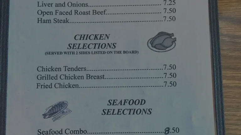 Probably a great place for regulars, and the food and service aren't terrible, but I'd say nothing to really write home about. Decor is friendly enough, with lots of "fat chef" figurines and other bric-a-brak. Food was ok. Potatoes were powdered and the fries were from frozen. Fried chicken and green beans were pretty flavorful, but there is much better nearby, as long as you don't mind a busier place. Folks working the front of house were attentive, and good to us.Posted policy is cash only, nothing bigger than a $20.