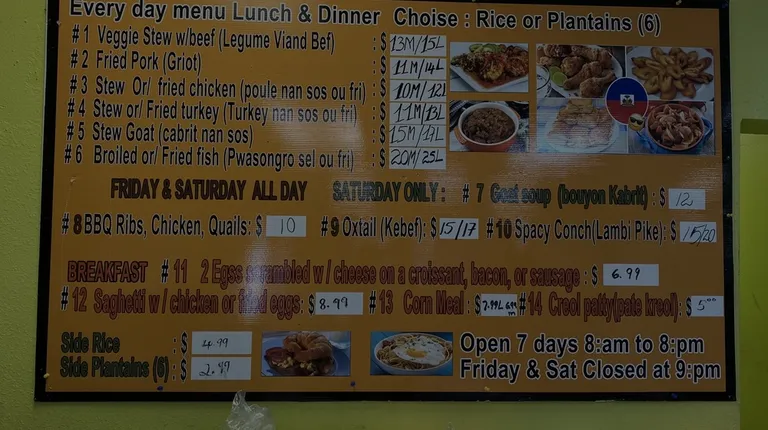 K & J is Caribbean grocery store selling hot food and grocery items. We have surprise visit when we pass by it. We stop and check it out. The Caribbean market is just so so. The hot deli is interesting. I believe they speak creole but not sure. We have a Legume Viand Bef. It is Caribbean vegetable with beef. All that cook in stew. The taste is interesting. It come with rice and a spicy claw slaw. It was delicious to try something new. The second dish is the Caribbean fried chicken with plantains. The coating is lightly touch. It come with three chicken leg. Food is good while it hot. Overall experience is special. But they are not easy to communicate. They got the wrong order in the first time. We corrected. The fried chicken need some wait time. But I like it fried at the order. Not sure we can call in order. Even so, they may get it wrong.