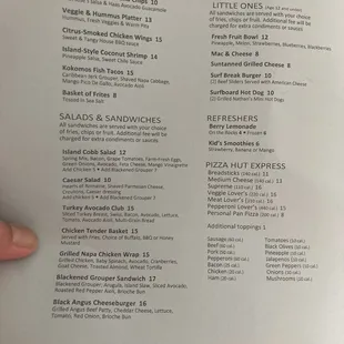 We ate here everyday for lunch. The Chicken wrap with goat cheese, avocado and cranberries was my favorite. My daughter loved the hotdogs and the Mac m cheese. Jason, Kimie and Sarah were our servers and were always running the food the drinks non stop poolside!!