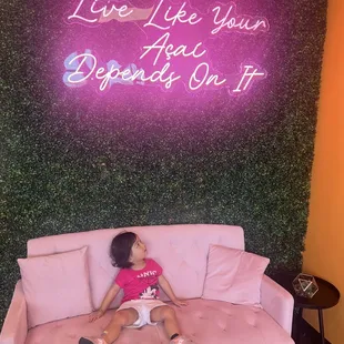 a little girl reaching for a poster