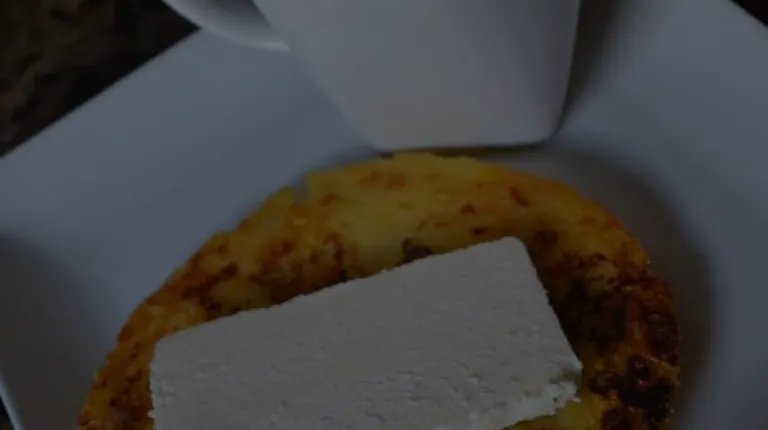 Calentado con Huevos, Arepa y Queso Empanada Colombiana de Carne