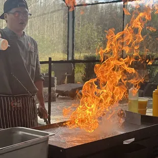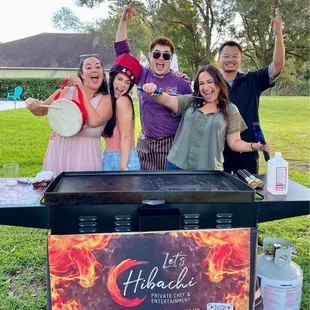 Got to try this business out a few months ago and we're pretty impressed! The concept is to have a hibachi show/dinner in the comfort of your own home. We booked online and had to fill out our menu preferences per person in an online form. We received email confirmations and even had questions answered via email in a timely manner. The day of the event our appointment time arrived and there was no sign of the business. We understood traffic or getting lost so we patiently waited about 10min before calling the number in the email. We didn't get ahold of anyone. We waited another 10min and tried again-still no answer. About 30min after our appointment a car drove up and it was them without much explanation. There were 2 employees and they went and set up right away. We regularly go to our local hibachi restaurant so we are very well aware of the typical tricks and show that is usually put on. Our chef was friendly and hilarious. His slight English made some things hard to understand but overall he was a great sport and got his message across. They incorporated us into the tricks and show which was cool! Lots of sake rounds were made. We were crying with laughter. The food was good but it did not include noodles which was a bit of a let down. It included rice, sauce, veggies, salad and protein(s) of choice. The chicken and steak were very tender and juicy. Overall a great experience and we would definitely recommend and book again.