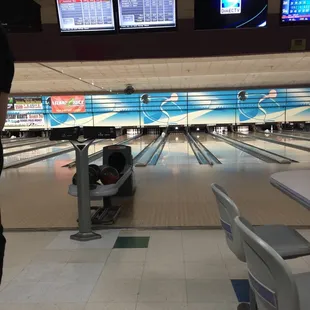 Dirty. Bathrooms don't work. Staff and management are inept and rude. Bowling conditions are horrible. Machines break down constantly.Go down the street to another bowling alley!