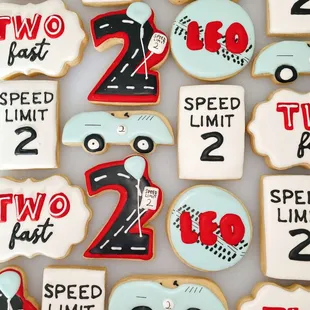 a variety of decorated cookies