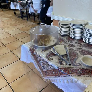 Easily the worst food I've had in a very long time. We were excited to try this place and it's like stepping a time capsule. We had high hopes that this would be an old school treat, but sadly not the case. There is a buffet which looked like old gloop that had been around for days or weeks. We opted to order off the menu hoping that would improve our chances but sadly disappointed. The gyro plate was frozen strips that were barely heated up on a grill, the tzaiki was tasteless and clearly not homemade. My husband ordered lamb and it was cold and rubbery. Overall very disappointing.