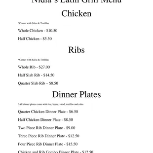 Menu | Nidia's Latin Grill | Dover FL | June 10, 2022