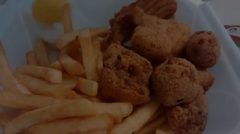 Very nice, hush puppies actually have flavor & my friend mullet although modest in size was fully butter flies as requested. Everything arrived fresh