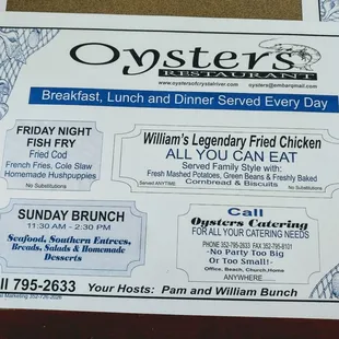 Great friend chicken and everything else. I've been eating at William's Oysters restaurant for years 28 and have never been disappointed. The prices are good and the food is wonderful as is the service.
