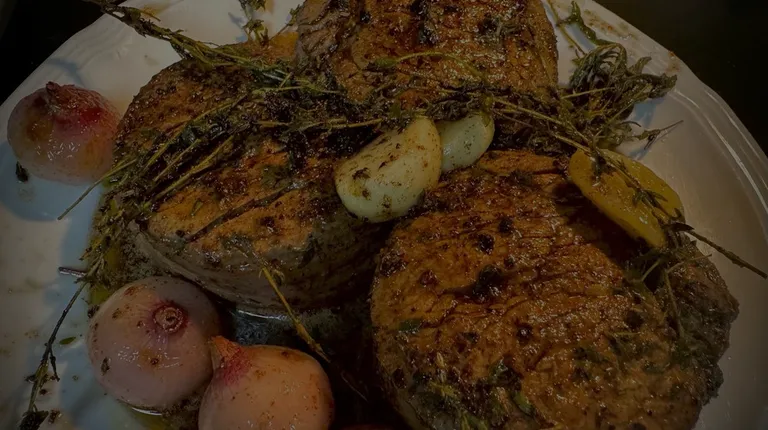 The result...a lean and tender cut of bison paired with a beefsteak tomato.