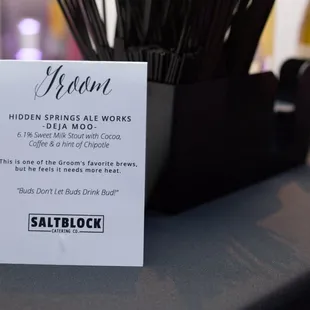 We will be doing our wedding catering through SaltBlock and we could not be more excited. We recently did our menu tasting and were so happy with the food and even the staff helping with the tasting were so polite and professional. If you work with Ryan, he's extremely attentive to details and will make sure you are happy with your menu.The thing that helped us make our decision was the presentation of the food, which I think it's super important for the overall experience at an event. Not only is all their food delicious, it's presented beautifully. They also have great unique additions for catering, such as their oyster cart for fresh shucked oysters in happy hour, the salt mine which is a large beautifully displayed 8ft cheese and charcuterie board and the dessert mine, a large 8ft dessert spread. We will be doing family style, a fun in between option between plated and buffet. If you are looking for catering for any event, especially wedding catering, I would highly recommend this company! Your guests won't be able to stop raving about the food.