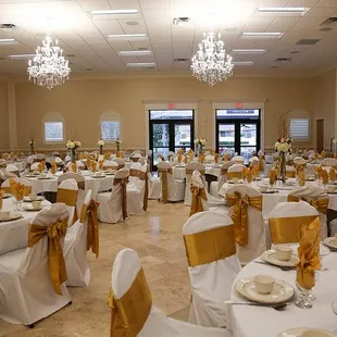 Got married here in December 2017 and we were very pleased. Chrisanne was the manager of the hall and went above and beyond to make sure our day was the best day ever!We had a small Marine Corps style wedding of only 30 people. We had the ceremony outside by the palm trees and had the reception in the hall so it was very convenient having everything in one location. The have a projector for slideshows and a speaker setup for microphones. Outside catering is allowed and they have a full kitchen and bar area for rent if needed. Highly recommend for a wedding!