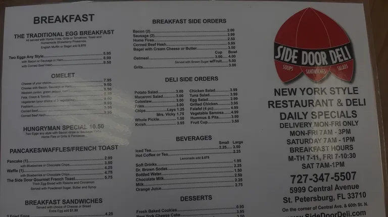 A good solid place to grab breakfast or lunch.Good service, Good food .I was in the mood for a sandwhixh during lunch last week and saw the side door deli. I orderd the Josh on rye, it's a turkey club that comes with your choice of a side. I went the potato salad and ordered Motzah ball soup to go. Everything was really good , bread was soft and the soup was homemade snd had great flavor. I'll definitely be back to try some of their other dishes.