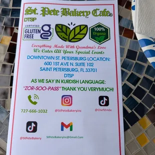 This is a great little bakery. They have a nice variety of offerings and drinks including, teas. And if one has a nut allergy, one can feel confident buying foods from here. The owner, Danny, is very friendly. They are Kurds. Kurds are allies of the US and the west. They are a burgeoning democracy. It is important to support small businesses particularly businesses like the St. Pete Bakery that support the community be offering quality food options.