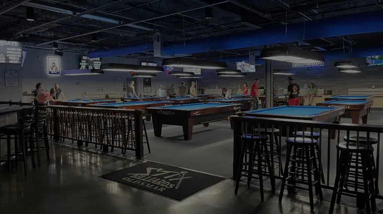 First time here and I couldn't have had a better experience!About 15 pool tables, 20 TVs, 24 tables, 30 bar seats, 5 electronic dart boards, 3 arcade golf games, 2 arcade basketball games, and a projector screen in the seating area!$5 to play per person all night and you pick your own table. First come, first serve. I came on a Saturday night at 8pm and there were plenty of tables available. Watched the UFC Fight Night fights on the projector screen after we played.Hundred percent recommend coming here to play if you're nearby!Sincerely, A happy customer