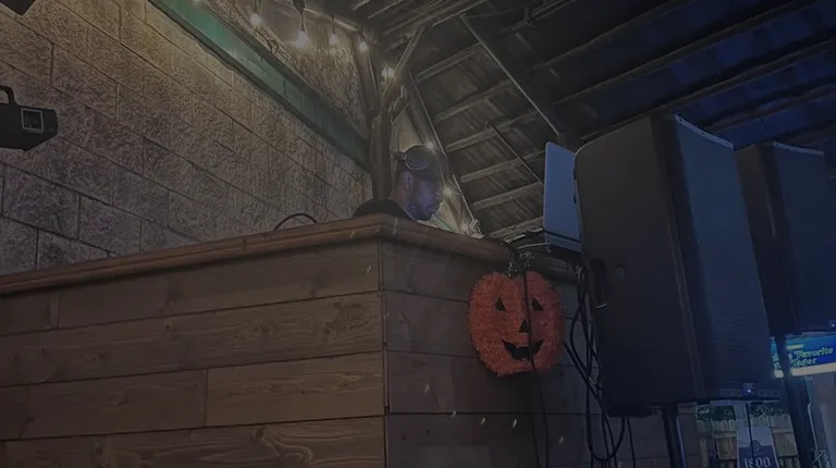 Outdoor patio with DJ and hookah