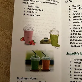 The woman working was very nice but wasn't very customer service oriented. She was listening to Thai dramas at full volume and would disappear which was weird. Visibly saw her microwaving the food that was not microwave food priced. My drink was very good and very well priced but it came out after the food, around 25 minutes after I ordered it. The hours are very odd and I would totally come back for the boba if they were open for lunch. The place has potential but doesn't have the sit-in vibe.