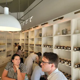 I'm a big DIYer so this date night experience was right up my alley. I believe it was just under $50 pp and we got the basic soy single wick candle creation experience. Not a terrible price for them having a plethora of scents on hand, but our experience wasn't the best it could've been. It was a pretty slow night - only two other groups of two. And at least 3 staff members. The spot is gorgeous and cutest of course being in Hyde Park. But the person helping us barely engaged with us outside of the standard instructions. We felt like we were kind of on our own mainly because they were chit chatting with the other staff member so much. There were even times when they would come back to help us with something and continue looking away talking to their colleague. It didn't feel like we were getting a personal "experience". It felt like we were just like a conveyor belt of candle makers and the staff member was absentmindedly checking in to make sure we were doing it right. I have made candles at home before so I generally know how it works(we didn't NEED much attention). So I was hoping for a little extra insight. Maybe a talk about how to best create scents or what goes into the melting machine/process....something more than "here's what we got and you just put it together". What it was missing for me: candle accents. Maybe something to decorate the jar if we want. Floral or gem toppings to place on our candle for more personalization/goodies. What was great: assortment of scents. Can help you identify what you like and should buy for DIY at home. Also not having to melt your own wax which can be messy. I would go back if it was a big group of friends or a special occasion where someone wanted to try but once was enough for us. We got the candles and burned them and they smell good. Not as strong as others could be but I think these are the chemical free good for you type so that's expected.