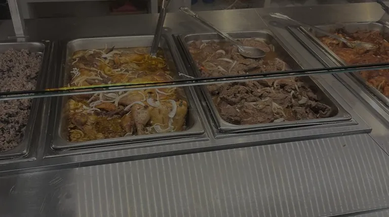 Parking out front is limited but the turnover rate is fairly quick. A good hole in the wall lunch spot. The food is located to the right in the back and groceries are to the left. You also pay for your food at the register in the front. They have daily specials and the portions are not only generous but inexpensive. There's seating inside so you can dine in should you choose.I got the goat with rice and maduros. The maduros hit the spot. I had to resist ordering empanadas too because my feasting eyes were bigger than my stomach. I was so full from my meal I took half home and didn't have room for the guava pastelitos I was eyeing for dessert. The colada was a perfect pick me up for after lunch and all my co-workers enjoyed it when I brought some. So definitely a good value for lunch or for your afternoon coffee.They also do breakfast foods too in the morning but I never gone there except for lunch.