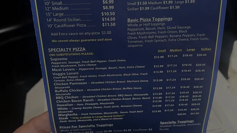Oh my gosh!! Where have you been all my life?! This place has DELICIOUS food! Basic cheese pizza? Delicious. Crispy crust, great ratio of cheese to sauce, and excellent price. A small pie is a perfect size too. Garlic knots are a dime a dozen, right? Wrong! These are soaking in an addictive garlic butter herb pool. Also perfectly cooked so they go crunch on the outside but soft and doughy on the inside. Stromboli, fantastic and extremely large portion. They even have mini cannolis. We will DEFINITELY be repeat customers! (Bonus: they seal up your food really nicely if you're ordering Uber Eats, so there's no question if your food was tampered with or not.)