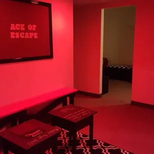 In the waiting room, illusionist room escape room door.