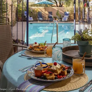 Love this little hidden gem of a B & B which is located just a few blocks from the University of Arizona. During our two night stay, we were fortunate to have this quaint little inn to ourselves. Our mornings started with a delicious, home-cooked breakfast prepared by the innkeeper (Tom) and his assistant (Ria). After breakfast, we spent our time sightseeing out in the hot desert sun and came back in the evening to enjoy a quick dip in the pool before heading to our room for the night. Our room was beautifully decorated with Southwest touches, high wood beamed exposed ceilings, colorful tiles and a whimsical desk chair. The bed linens were soft to the touch and the plush mattress was covered with a fluffy comforter that invited us to a good night's sleep.We will be back very soon!!