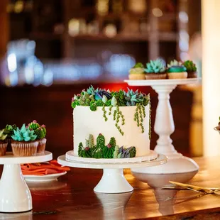 a wedding cake and desserts
