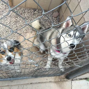Great place and out bet is next door in case anything is needed. This is the second time I've left my sweet babies here and I highly recommend them. It's not a fancy place but they have a great set up and its efficiently run- all of the dogs are taken outside separately so no risk of incident inner mingling dogs. My pups were happy to see me - but they were in great condition and I could see that they had been well cared for.