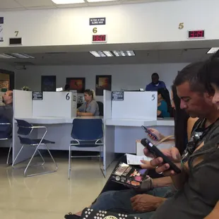 I arrived around 11am this morning and the line was coming out of the door. I thought, oh no this is going to take forever!! Well I was soooooooo wrong!An employee greeted each person (with a smile) and asked why they were there, she then directed them to the area where they could be serviced. I needed my picture taken and a new license and within a few minutes was getting my photo taken. They gave me a form with a clipboard so I could complete it in line. Before I knew it another employee (with a smile) said next in line and I paid my $12, received my temporary license and she said I would get my permanent license in about 2 weeks. Less then 15 minutes later, I was walking out to my car. Very impressive DMV!! Keep up the great work!