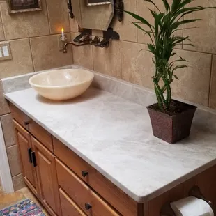 Francisco did a fantastic job on our dual vanities bathroom, laundry room and second bath.The flow and movement of the quartzite matched beautifully on the backsplash of the sunken bathtub all around, along the split countertops. It looks amazing!Francisco did a outstanding job on the estimate, timing and installation. It all went smoothly with excellent communication.I would ask Francisco to help on my next project. Thank you so much!