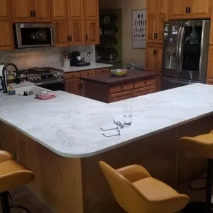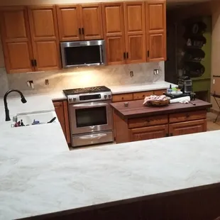 Absolutely fantastic work! Oscar and Fransico went above and beyond to make our countertops amazing. Our Marble countertop has beautiful patterns all across it. The gentlemen were able to make it so that the patterns flowed seamlessly through even to the backsplash. The marble itself was a bit delicate and we live off-grid so they went above and beyond making sure to drive very slow so that the marble would not be damaged in any way. They worked very well with us providing suggestions and pictures during the entire process so we knew exactly how the cuts were going to be made and maximized the amount of marble used from the slab we purchased. They were friendly and very professional in their work. We are very happy that we chose this company to make our kitchen beautiful. J&J Ranch AZ is very happy to leave such a great review here for them.