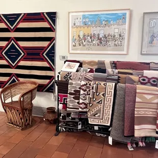 Nice collection of contemporary Native American jewelry with the proper mine identification. Deep collection of kachinas and Navajo rugs. Fair to full retail prices.