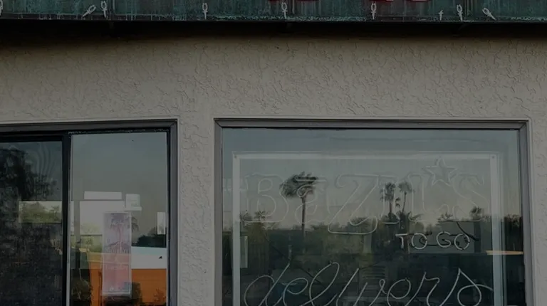 Located near the actual restaurant, Bazil's To Go overlooks Sunrise Dr next to a yogurt place and former gas station.
