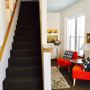 My husband and I stayed in room 204 which has a private outdoor patio. First, let me say that the bedroom features the most comfortable mattress--soft yet firm with quality pillows and linens. The kitchen is complete with full-size refrigerator, electric oven, dishwasher, microwave, ice maker, and keurig. You are supplied with a selection of coffee, tea, hot chocolate as well as creamer and bottled water in the fridge. There is a separate living room with flat screen TV and free access to Amazon Prime, Netflix, and internet TV. Bathroom is nice and is equipped with soap, shower caps, shampoo, toothpaste, (etc.) as well as big fluffy bath towels. The suite is spacious, clean, and nicely updated. There is no front desk. The building is a brownstone with several apartments/suites. The owner is very responsive and she checks in on you via text to see that you have everything you need.Free parking is just steps from the front door. We were able to park and see our vehicle from the suite.The only negative: You must climb some steep steps to get to room 204. No elevator. Bisbee, in general, because of its historic setting and hills probably isn't the easiest destination for someone who is elderly or who uses a cane or wheelchair. Lots of steps, uneven pavement, hills.That said, it is a charming town. I could tell that the town takes pride in keeping it clean. I noticed police on patrol at night. We had a very enjoyable visit to Bisbee and the Brownstone Suites was an excellent choice for our accommodation.