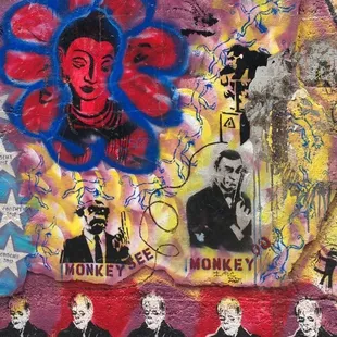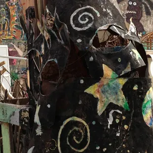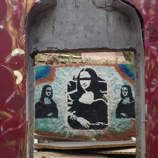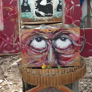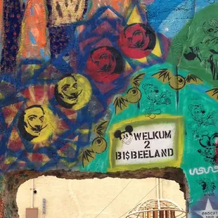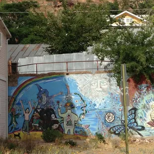 Bisbeeland is a sight to behold in Bisbee. It is an artist's home that is totally decked out in sculptural art pieces, mixed media and "graffitti" art. The streets are painted with murals from iconic people such as John Lennon and Mother Theresa, a pop art smoking sock monkey, dia de muertos and policital expressions. There is a sort of shrine set up with Mona Lisa in the middle. I saw something about a bark park, but not in the traditional sense, rather I believe the artist has three dogs that you might see. Every inch makes for some cool photographs. Every second you discover something else. It leaves you in admiration of such creativity. It totally reminded me of the Heidelberg Project in Detroit, but instead of an urban excape it is nesteled in an artist community winding through the mountains. It is a must see!!!
