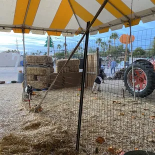 We have been coming here every year since my stepkids were little and it's become our family tradition, which they insist on keeping even though they're teenagers and last year they didn't even have to time carve the pumpkins we bought. Part of the charm of Brian and Kelly's is the space itself, a pop-up business in a large tent that appears in the dusty lot next to Wings over Broadway when the weather starts to turn cool and then vanishes again when spring arrives. We don't buy Christmas trees, so this review is just for the shop in its Halloween aspect: thousands of pumpkins, including many varieties arranged beautifully, other gourds and autumn decorations including chili pepper strings, inflatable decorations, ubiquitous straw bales, and at least 2 displays of farm animals. This year, there were a couple goats, and a tank with bunnies and chicks, and maybe one other, less memorable creature. You can also get apples, cider, mini doughnuts, honey, and some other food.I guess part of what you're buying at Brian and Kelly's is the overall experience. This is a great place to bring your kids in their costumes for an impromptu photoshoot or just get yourself in the holiday spirit. Admire the giant cinderella pumpkins; marvel at the flat white pumpkins. However, while the selection is greater these pumpkins all cost more than the ones they sell at the grocery store and they only take cash.